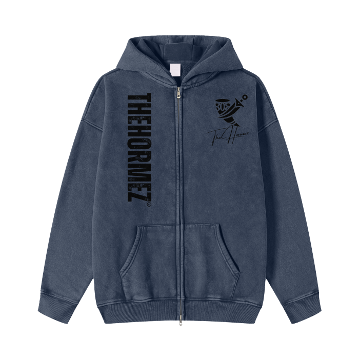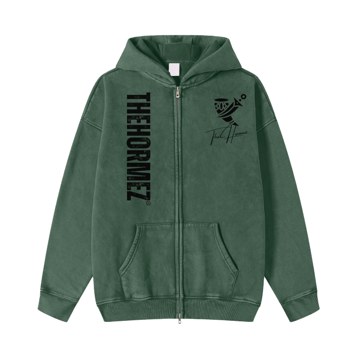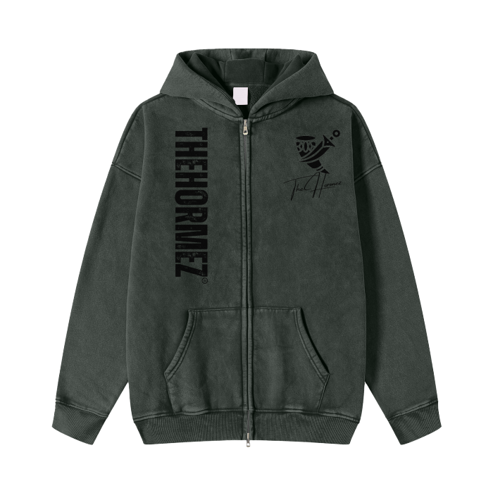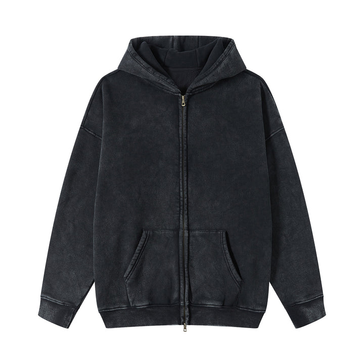 Streetwear Acid Washed Zip Fleece Hoodie Jacket - 360 GMS
